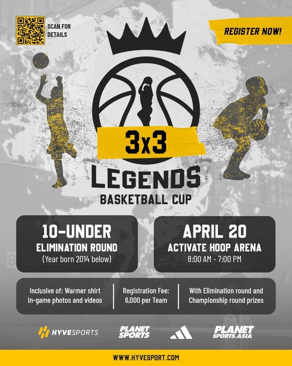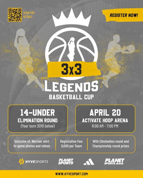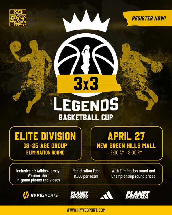 The Youth Eliminations will take place on April 20 at Activate Hoop Arena and Elite Division will take place on April 27 at the new GH Mall. Please refer to the event schedule for specific game times and court assignments. The championship round for youth divisions will be held on April 27, Saturday, at the New Greenhills Mall in San Juan City.